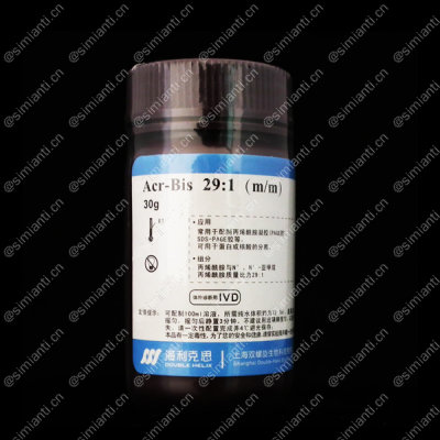 常用于配制丙烯酰胺凝胶(PAGE胶)、SDS-PAGE胶等,可用于蛋白或核酸的分离;