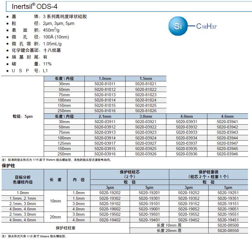 Inertsil® ODS-4液相色谱柱,5um,岛津,5020-03936 5x250x4.0