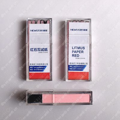 红石蕊试纸为浅玖瑰粉红色,pH变色域为4.5(红)-8.0(蓝)。