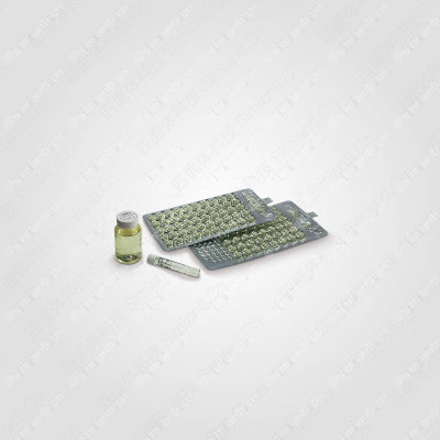 描述:97孔定量盘中充满黄色及荧光染料,以判读阳性结果