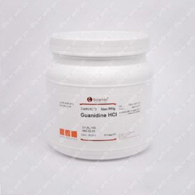 (2) 作为提取细胞总RNA实验中的强烈变性剂。盐酸胍溶液可溶解蛋白质,导致细胞结构破坏,核蛋白二级结构破坏,从核酸上解离下来。还能够充分抑制细胞和整个组织的核糖核酸酶活性。
