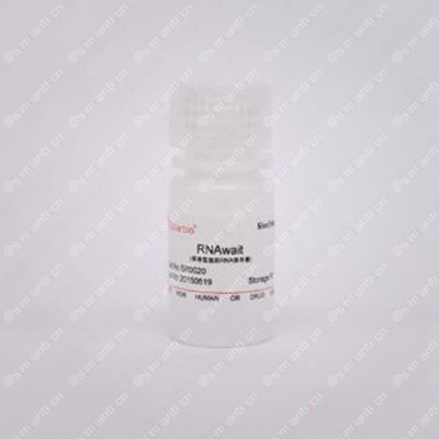 RNAwait是一种无毒的可直接使用的样品储存液,能使细胞内的RNA与RNA酶分离,可以快速可靠地保存动物组织、细胞内的RNA。组织获取后立即浸入RNAwait保存液中,在室温可以保存7天,4℃可以保存4周,-20℃、-80℃标本可以长期保存,RNA稳定存在不降解,取出后用各类方法抽提可以获得高质量的RNA。