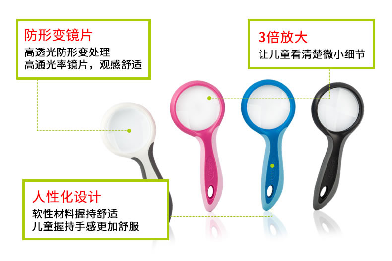 3倍手持式放大镜,马培德,白色边框