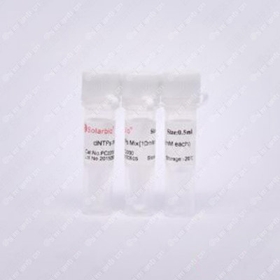 高质量的dNTP对cDNA合成、测序和标记反应的成功非常重要。本产品经过严格的质量检测,纯度高达98﹪以上,不含RNase和DNase。dNTPs Mix是dATP、dGTP、dCTP和dTTP的等摩尔混合物,作为PCR反应底物时,用无菌超纯水稀释成适当浓度即可。