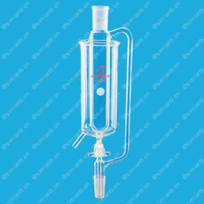 产品特点:带夹套的恒压滴液漏斗,夹套口部允许放入大量的干冰进行冷却。夹套底部有一个排水口,节门为标准玻璃可互换节门。