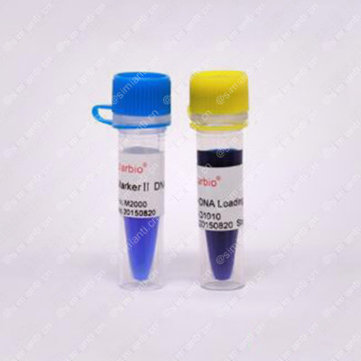 MarkerⅡDNA Ladder是由单独制备的PCR产物混合而成,共有6条DNA片段,已加入上样缓冲液,可以直接电泳,每次上样5μl。为便于电泳后观察,特异性加强800bp条带,其浓度约为100ng/5μl,其它条带的DNA浓度约为50ng/5μl。