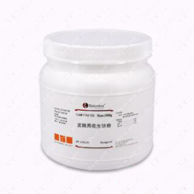 说明:本品是黄色粉末;有花生蛋白的特有气味。BR 生化试剂。花生饼粉是花生榨油后粉碎而成的一种灰色粉末。特适宜于微生物培养和发酵使用。花生饼粉是发酵常用的重要廉价氮源原料。发酵专用的花生饼粉是80目以上,细度越细微生物利用越好。饲料用花生饼粉粒度粗,不适合发酵使用。